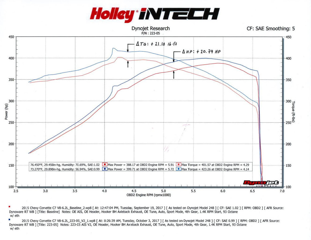 Produced +20.79 horsepower and +21.10 lbs. ft. of torque with excellent performance across all RPM levels