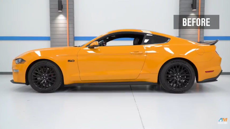 Aggressive Stance. Not only does a set of Ford Performance Springs improve the handling performance of your Mustang, but they also improve its overall appearance. By lowering the ride height approximately 0.78 inches (20mm) both front and rear, that huge tire to fender gap is eliminated, providing your Mustang with an aggressive muscular stance.