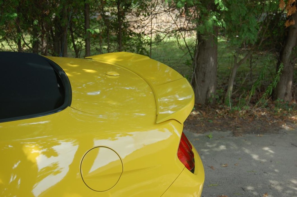 Application Note. The Rear Spoiler may come in contact with the factory antenna when the trunk is opened on Convertible models.
