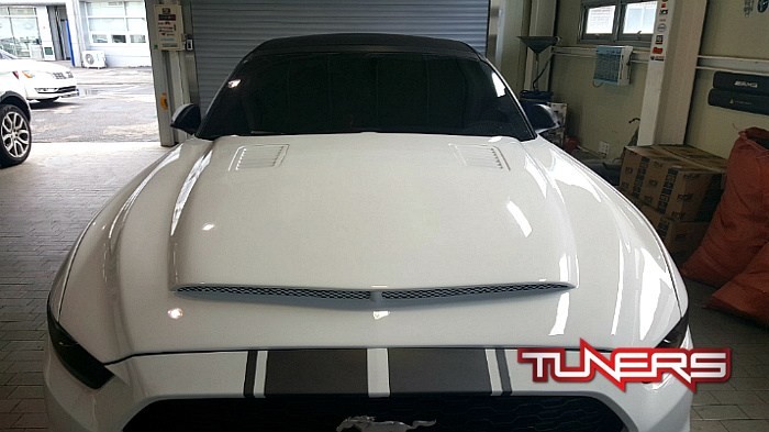 머스탱 차량의 에프터마켓 후드제품으로