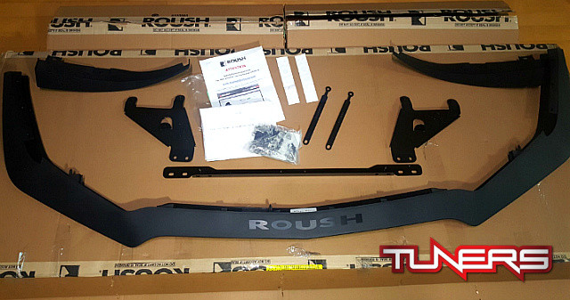 Track Inspired Styling. Add an aggressive track inspired appearance to your 2018 GT Mustang by installing Roush's 3-Piece Aero Chin Spoiler and Wheel Shroud Kit. This Chin Spoiler replaces the stock spoiler to considerably alter the overall look of your Mustang's front end. This 3-Piece Aero Chin Spoiler and Wheel Shroud Kit is a great way to set your 2018 Mustang apart from the rest.