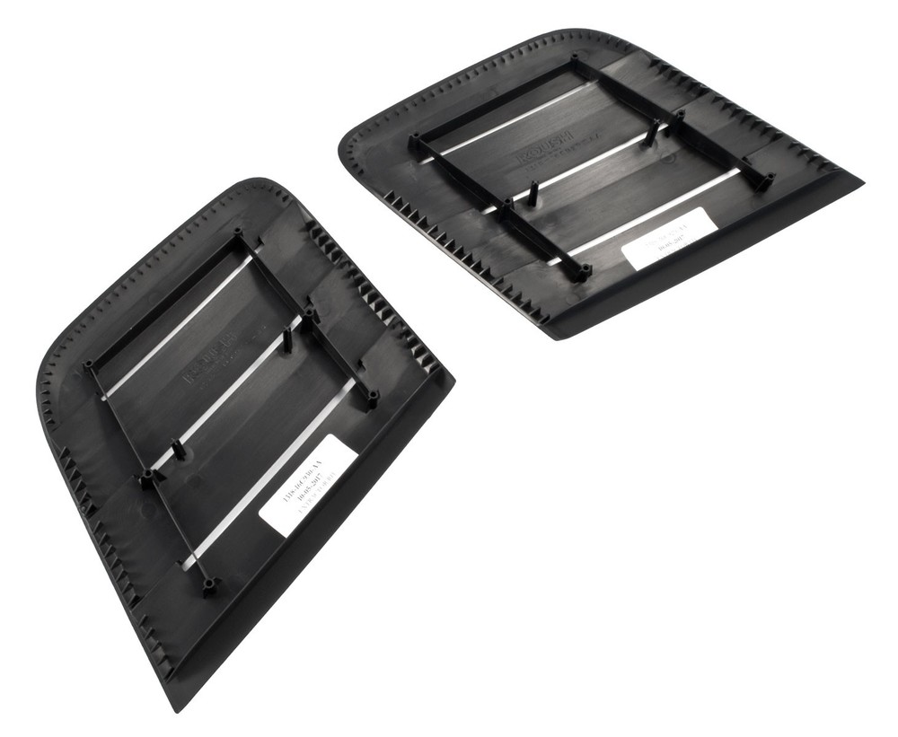 Roush Quality. Roush manufactures their Heat Extractor Vents in the USA at their own plastics manufacturing facility from OEM quality injection molded acrylonitrile butadiene styrene (ABS) using the original OEM CAD data from Ford to ensure a perfect fit. ABS is an extremely strong material known for its light-weight, superior durability and impact resistance - making it perfect to withstand the hazards of daily driven vehicles.