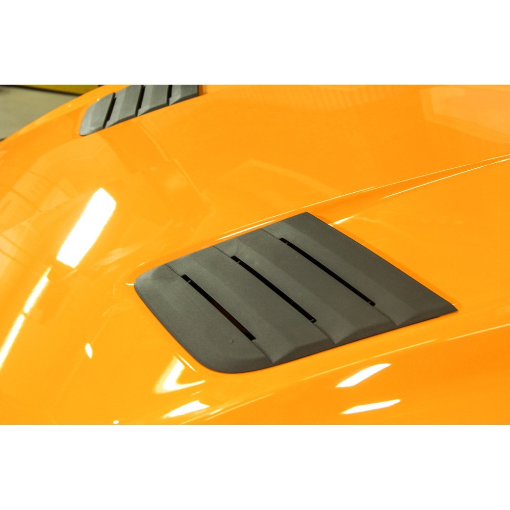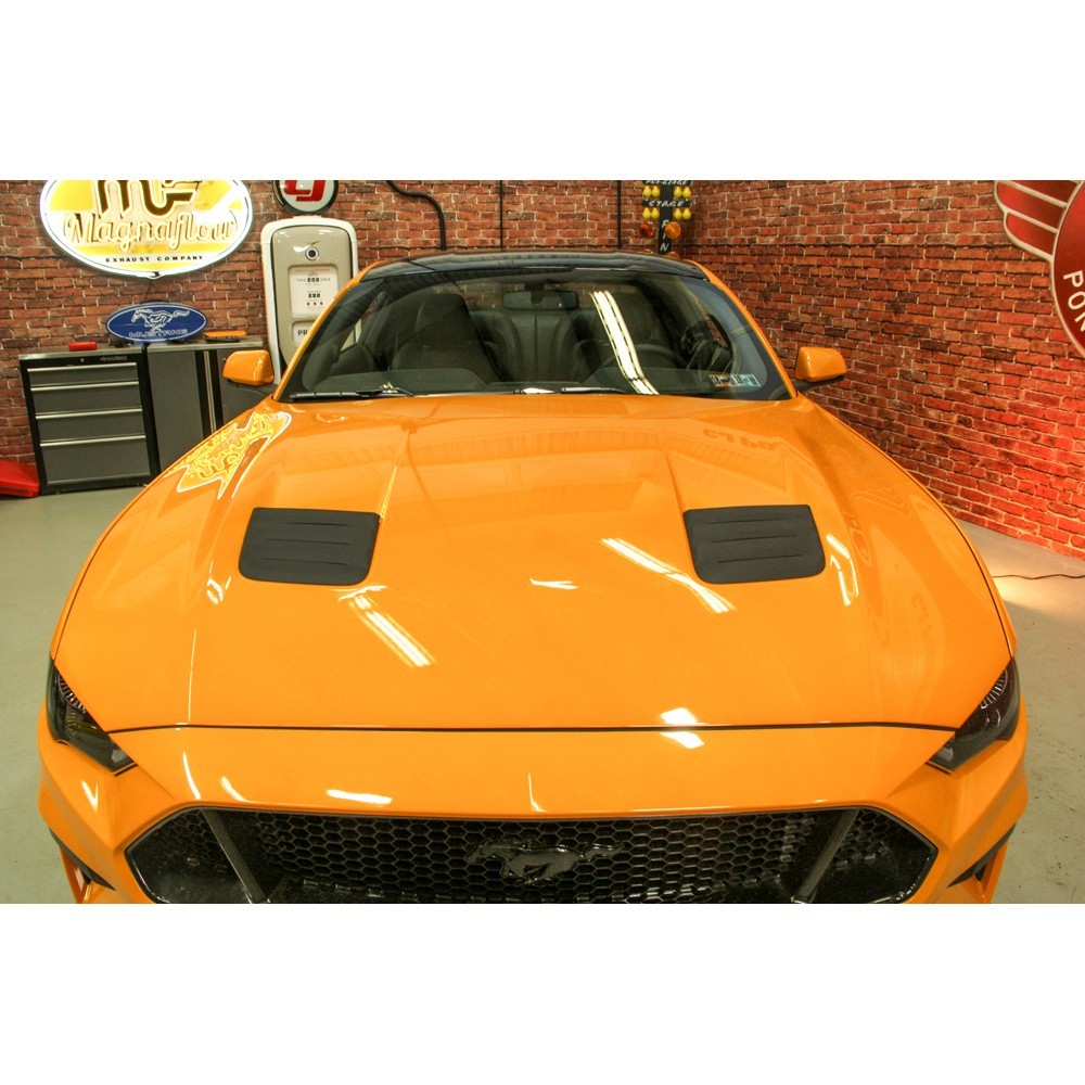 Heat Extractor Vents. The ultimate addition to your 2018 Mustang's hood is a set of functional Roush Heat Extractor Vents. Designed with rearward-facing openings, each notch of these Vents create a small low-pressure zone that allows hot air to escape quicker, which in turn helps reduce under hood temperatures. These Vents not only reduce under hood temps, but they will also give your Mustang an aggressive track inspired appearance.